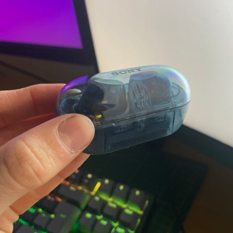 Mukana latauskotelo, USB-C laturi, vaihdettavat silikonikuulokkeet ja käyttöohjeet.
