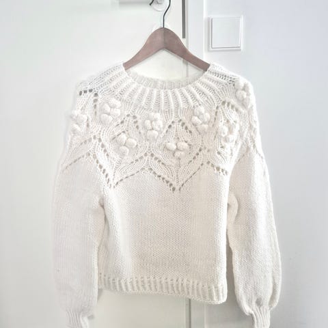 Rento ja nätti pitsineliöistä virkattu villapaita