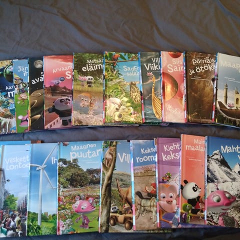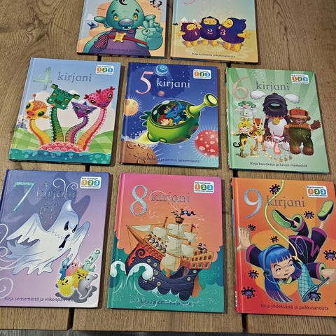 Vau'kirjan esikoulusarjan kirjoja. Ensi numeroni numero 1 ja Pelaa ja opi -kirjat. Ensi kirjaimeni kirjain A-, C-, P-, H- ja O- kirjat, sekä kirjainkoulu magneettikirjaimilla. Lisäksi mukaan erilliset kirjain- ja numeromagneetit (eivät kuulu kirjasarjaan).