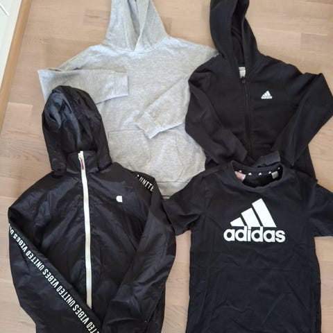 Sisältää Everest toppatakin, ja toppahousut sekä Adidas verkkarut ja välikausihousut.