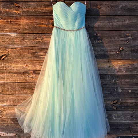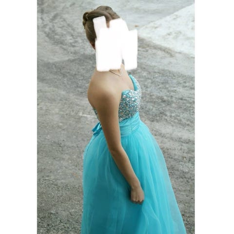 Myydään kerran käytetty vanhojentanssimekko. Takana nyörit, joilla kokoa mahdollista säätää. Mekon käyttäjä ollut noin 160 cm pitkä. Mekko pesty käytön jälkeen pesulassa ja säilytetty lämpimässä.
