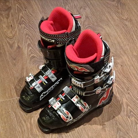 Hyväkuntoiset Nordica Dobermann GT TJ laskettelumonot, sisämitta 240-245 mm, ulkomitta 288mm, koko vastaa kenkäkokoa 38.