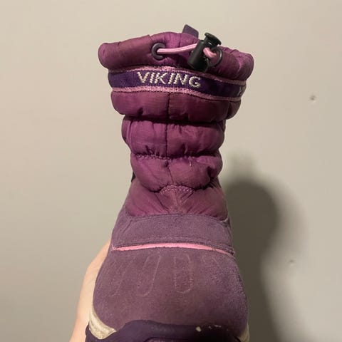 Viking lasten talvikengät, koko 30, suunniteltu tytöille. Kengät ovat väriltään pinkit ja sopivat kylmiin olosuhteisiin. Valmistettu kestävistä materiaaleista, jotka tarjoavat suojaa ja mukavuutta lapsen jaloille. Vasemman jalan kengässä kuvassa näkyvä pieni kuluma, ei haittaa menoa yhtään. Siistit käytetyt talvikengät seuraavalle.