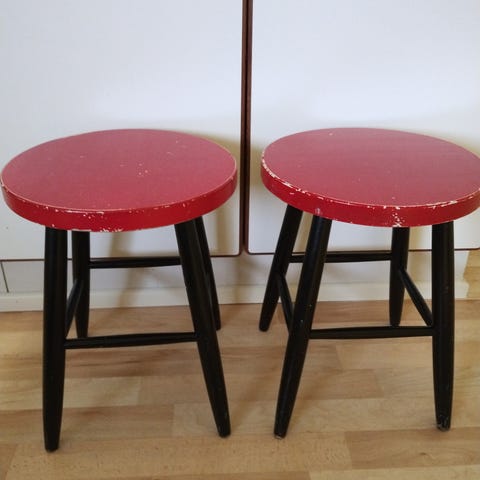 Vanha kampauspöydän jakkara. Päällyste uusittu. Tukeva istua. Kaunis vaikka eteisen jakkaraksi.