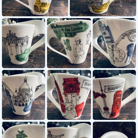 4kpl 0,2l kahvikuppeja, neljä pyöreää aluslautasta sekä neljä pientä tarjoilulautasta. Kaikki ehjiä ja vähän käytettyjä. Vain nouto Ruoholammelta.