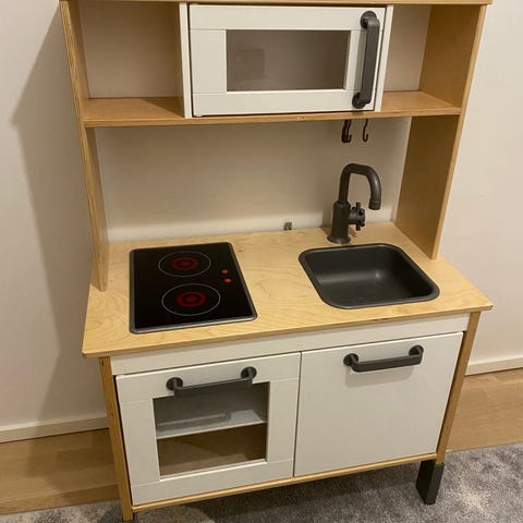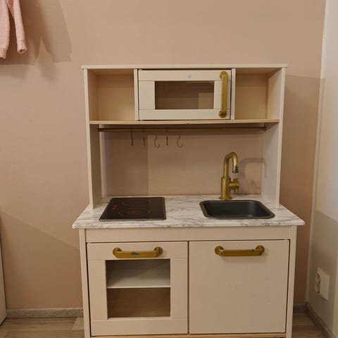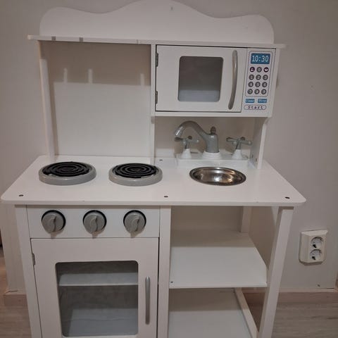 Myydään Ikean tuunattu leikkikeittiö tarvikkeineen.. Leluissa kulumaa ja keittiössä myös, mutta yleisilmeeltään siisti ja toimiva.