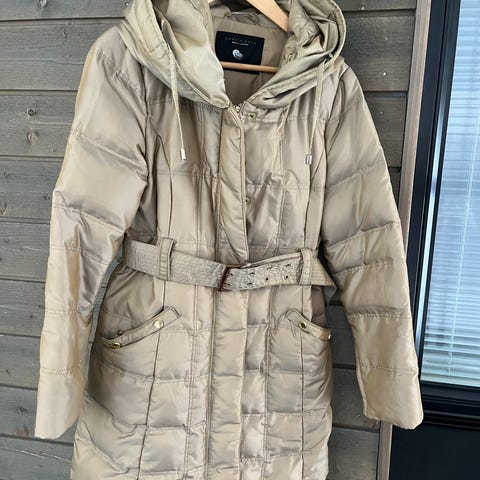 Zara:n untuva talvitakki edullisesti! Koko M, väri haki/tummanvihreä. Ohut huppu, joka menee piiloon kaulukseen ja siinä on vetoketju. Kauluksessa on musta tekoturkiskaulus. Sivutaskut ja vetoketjulla menee kiinni. Vetoketju ja neparit edessä. Olka-helma 57cm. Hinta 45e