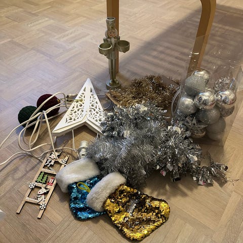 - viisi pientä tonttua (kuusenkoristeita)
