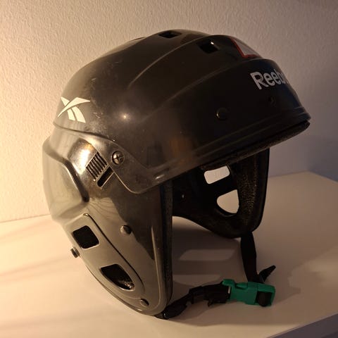 Vaaleanpunainen Reebok luistelukypärä, koko 50-58cm. Käytetty, joitain pintanaarmuja, mutta ehjä ja siisti.