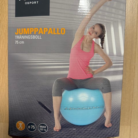 Myyn muuton tieltä ison jumppapallon. Tällä hetkellä ilmaa on pallossa vähemmän, joten helpompi kuljettaa. Helposti pumpattavissa isoksi halkaisijaltaan 65-75cm.