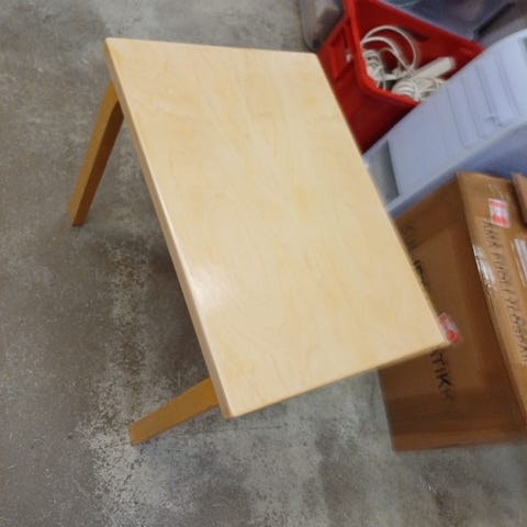 Artek 81c saarni lastenpöytä tai sohvapöytä. Pöydässä on käytönjälkiä ja kulumaa. Lakkapinta halkeillut.