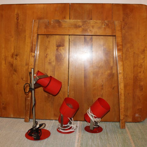 Vintage -ruokapöytä ja 4 kpl ruokapöydän tuoleja. Ruokapöytä hyvässä kunnossa. Tuolien verhoilut kuluneet, kaipaavat kunnostusta.