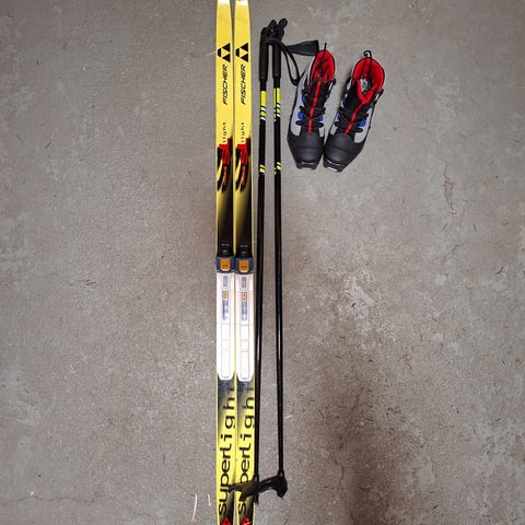Kuvan suksi-mono setti Karhun sukset ja Fisherin monot kokoa 41.