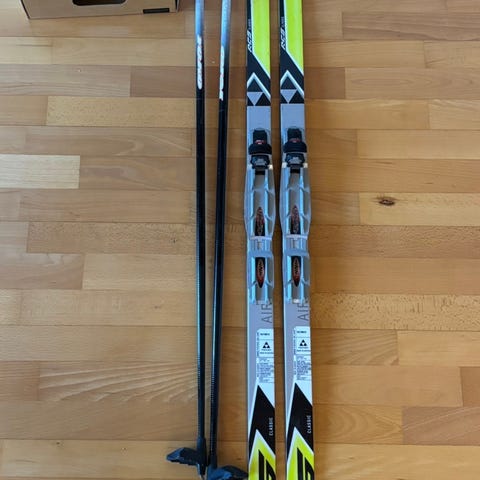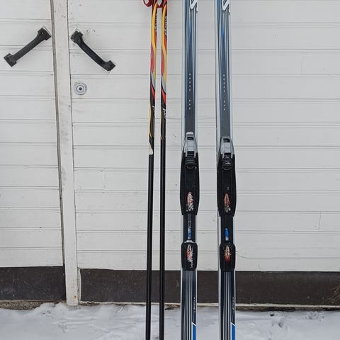 Fischer -sukset pituus 157cm, sauvat 120cm, Salomon SNS monot koko 37. Hyvä käytetty kunto. Nouto Vahdolta.