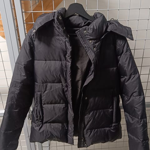 Musta R-Collection untuvatakki. Koko XS, kai-kai n. 47 cm, olka-helma n 63 cm. Irrotettava huppu. Kaksi vetoketjutaskua ja vetoketjullinen povitasku. Käytetty vain muutamia kertoja.