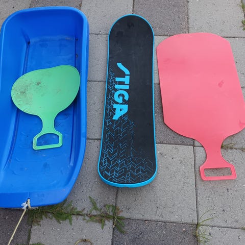 Nyt lähtis omat vanhat erittäin hyvin palvelleet pulkat tms kiertoon. Hyvässä kunnossa kaikki, pientä ja toisinaan hieman suurempaakin käytönjälkeä huomioimatta. Kaikkien pitäisi näistä huolimatta kuitenkin toimia, en ole kuitenkaan itse testiajanut ennen myyntiin laittoa.