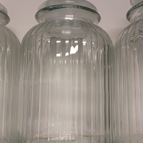 Iso lasipurkki bambu kannella jossa silikonirengas 2,5 l korkeus cm ja halkaisija 14 cm. Uudenveroinen kunto. 2 kpl, yhteishinta.