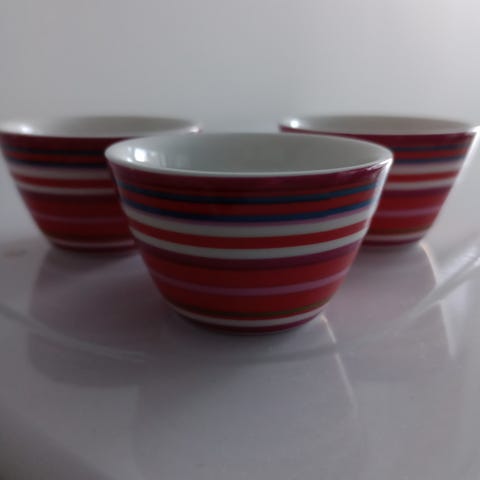Iittala Origo munakupit, moniväriset raidat. Setti sisältää neljä munakuppia. Uutena ostettu ja käytetty vain muutamia kertoja. Mieluiten nouto Hyvinkäältä, mutta sovittaessa postitus ostajan kustannuksella.