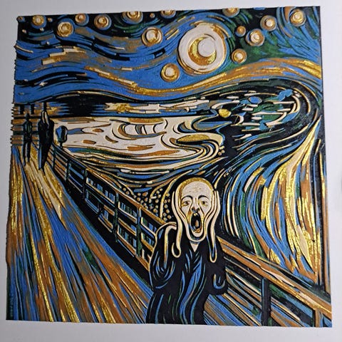 Alkuperäisestä työstäni painettu sisustustaulu Huippuvuorilta. Työn koko 20x30 cm (kehyksen ja paspiksen kanssa 30x40 cm).