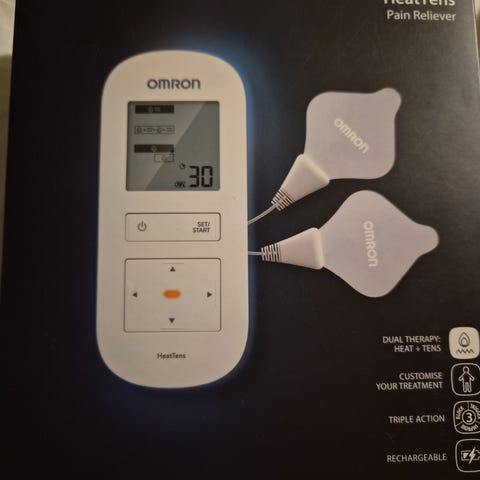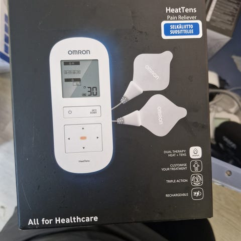 Käyttämätön Omron-merkkinen tens-laite kivunlievitykseen. Tuote alkuperäisessä pakkauksessaan sis. mukana tulleet ohjekirjat. Pakkaus on avattu.