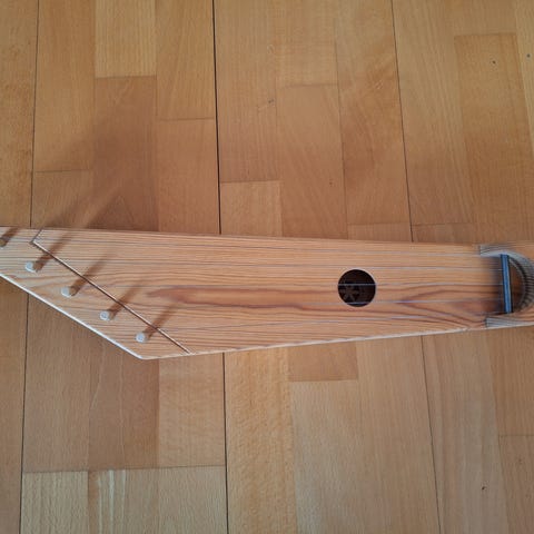Yhdellä lapsella muskarikäytössä ollut 5-kielinen kannel, pehmustettu kantolaukku ja viritysavain. Kanteleessa ollut pienet tarrat näyttämässä oikeita sointuja ja näistä jäänyt vaalentumat (näkyvät kuvassa).