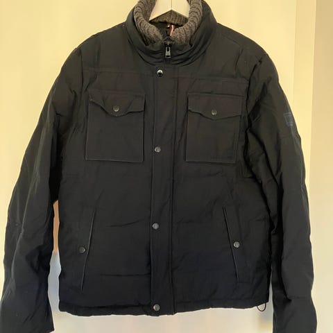 Tummansininen miesten Tommy Jeans untuvatakki. Koko M. ( Ei kovin reilua kokoa. Vastaa miesten kokoa S-M)