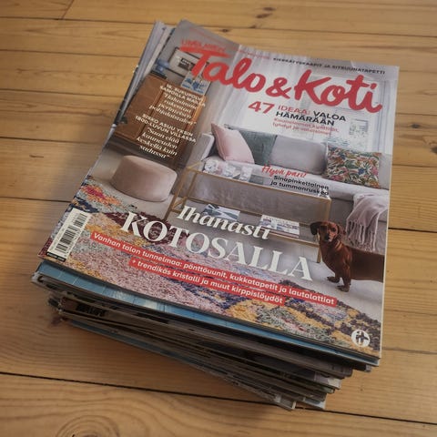Nämä lehdet ovat niin kauniita ja kodikkaita, että en millään suursiivouksessani voi laittaa niitä paperikeräykseen.