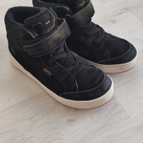 Mustat vedenpitävät talvikengät, joissa on tukeva pohja ja lämmin irrotettava huopakenkä. Sopivat käytettäväksi niin kylmissä kuin kosteissa olosuhteissa. Loskakeleillä ihan parhaat. Huopakengän ulkopituus 24cm, 21,5cm pituiseen jalkaan olleet hyvät.