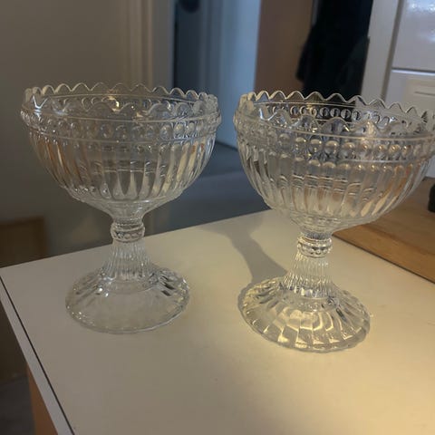Marimekko lasinen jälkiruokakulho sinisenä. Kulho on valmistettu lasista ja soveltuu jälkiruokien tarjoiluun. Täysin ehjä ja virheetön.