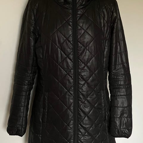Tummansininen kerran tai pari käytetty kevyttoppatakki. Ei näkyviä käytönjälkiä. Koko 46/48