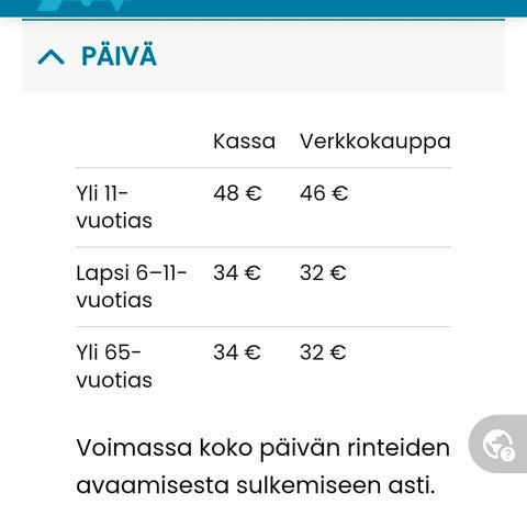 1 aik ja 1 lasten hissilippu päivälippu voimassa vain 7.01.2026