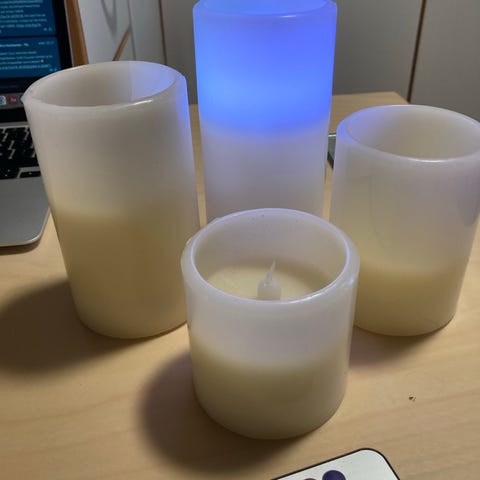 Hyvin toimivat led-kynttilät sisäkäyttöön tarkoitetut. Ostettu viime talvena, mutta jääneet ylimääräiseksi.