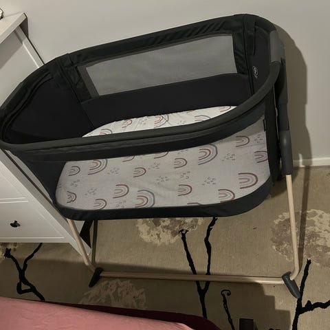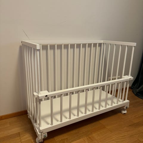 Helppo kasata ja ottaa vaikka mukaan reissuun. Saa kiinnitettyä omaan sänkyyn ja yhden laidan saa vetoketjulla alas. Todella siistissä kunnossa, ei pissa- tms. vahinkoja ☺️