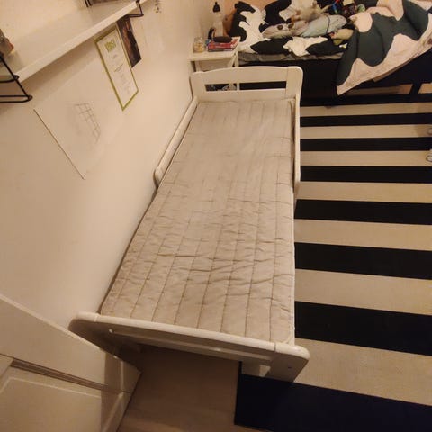 Myydään lasten sälepohjainen ja tukeva sänky. Pituus säädettävissä, jotta kaikki pehmot mahtuvat mukaan. Siisti patja tulee mukaan. Kyljessä runsaasti tarroja tytön maun mukaisesti. Sopiva ikä noin 2-8 v.