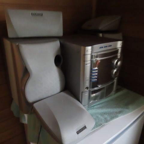 Siistit JVC stereot, jossa cd ja radio toimii mainiosti. Kasettipesät kaipaavat pientä huoltoa; kasetti soi hyvin, mutta pesä syö nauhaa. Kaukosäädin mukaan. Hyvät OR DX-5 kaiuttimet myydään erikseen 40e.