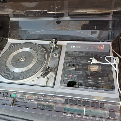 Myydään kuvanmukainen levysoitin. Ilmeisesti 1970- luvulta. Soittimessa radio ja kasettisoitin levysoittimen lisäksi. En ole toimintaa testannut, kun ei ole kaiuttimia. Johtokin pitäisi varmaan vaihtaa, kun pala puuttuu. Vuosia ollut käyttämättä koristeena. En postita. Nouto Jyväskylän Halssilasta!