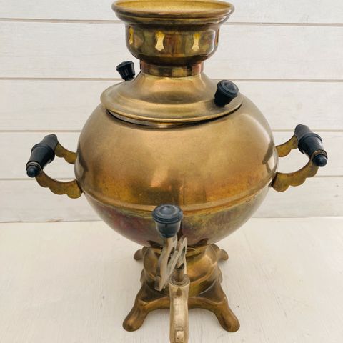 Vanha suvussani pitkään ollut samovaari. Koristekäyttöön. Samovaarissa on ajan tuomaa patinaa, hanan alkuperäinen kahva puuttuu, paikalle on tehty korvaava puuosa. Samovaarin sisällä jumissa yksi marmorikuula jonka olen sinne lapsena työntänyt :)