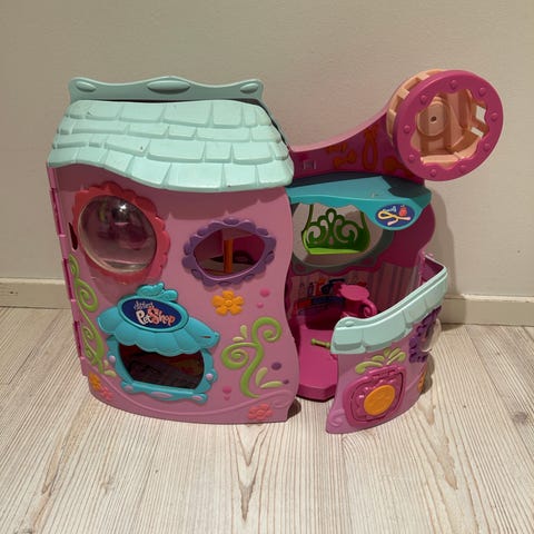 Littlest Pet Shop lasten lelu leikkitalo, jossa useita kerroksia ja erilaisia leikkialueita. Väriltään pääasiassa vaaleanpunainen ja sisältää useita pieniä leluhahmoja ja tarvikkeita. Sopii lasten leikkeihin ja mielikuvitusleikkeihin.