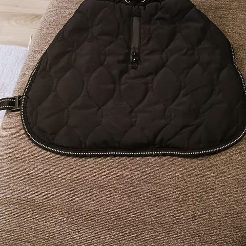 Pikkukoiran talvitakki heijastavalla ja vettähylkivällä pinnalla. Koko 25cm. Itsellä ollut käyttössä Yorkilla ja säätövara vyötärölle erittäin paljon molempiin suuntiin. Vyötärö kiinnittyy klipsillä. Takissa on säädettävä kaulus kahdesta kohtaa ja vetoketju valjaiden läpivientiä varten, jolloin valjaat jäävät takin sisään. Takana jaloille kuminauhat, jolloin istuu ja pysyy päällä hyvin. Pituuttaa voi hiukan säätää kuminauhalla.