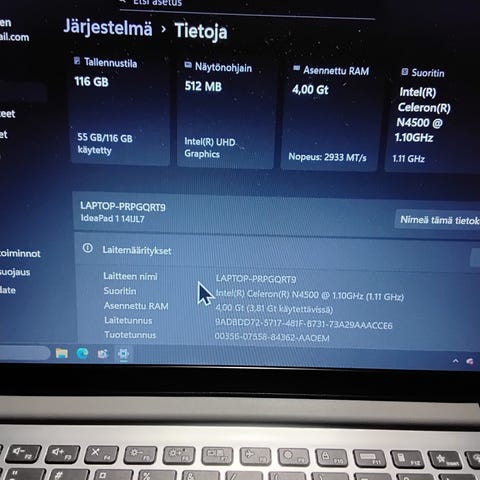 Lenovo IdeaPad 3 kannettava tietokone harmaa väri, varustettu AMD -suorittimella. Laite sisältää näppäimistön ja kosketuslevyn, sopii monipuoliseen käyttöön.