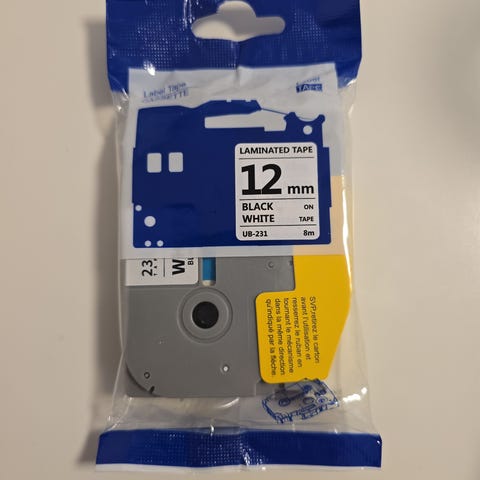 Brother TZe-335 White on black tape, 12 mm, 8 m - 1 kpl
