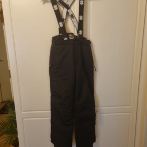 Lumilukoilla ja henkseleillä varustetut talvihousut