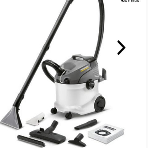 Kerran käytetty uudenveroinen Kärcherin tekstiilipesuri SE 6.100. Mukaan kuvissa näkyvät osat, myös alkuperäinen laatikko ja ohjekirja tallessa. Tekstiilipesurilla voi pestä esim. auton penkit, sohvat, matot yms. Voi käyttää myös märkäimurina. Ovh. n. 330.