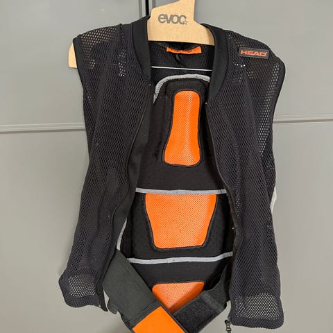 Liivi, jossa selän alueella pehmeä kilpi sillä ajatuksella, että selkänikamat ja kylkiluut eivät kaatuessa kolise suoraan parkin tellinkeihin, kiviin, tai jäähän.