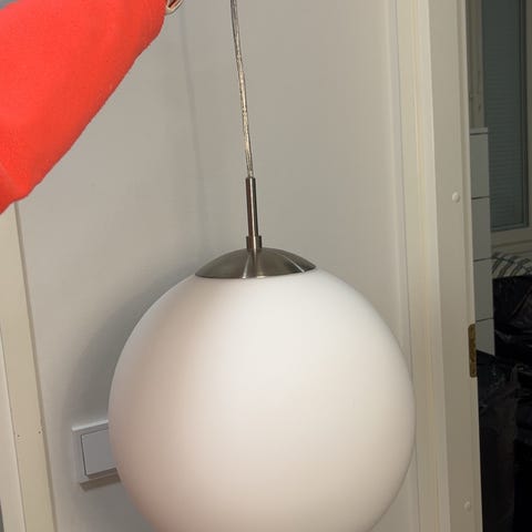 Eero Aarnion suunnittelema Ring-valaisin. Ripustin rakennettu nippusiteistä ja pistoketta ei ole.