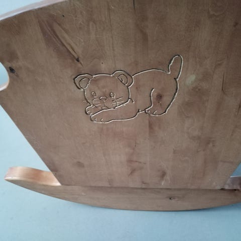Annetaan puinen kehto, soveltuu vasta syntyneelle, tai esim nukke leikkeihin.