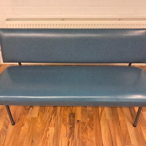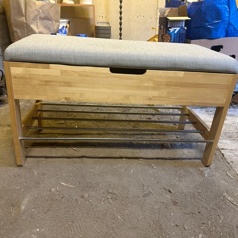 Tummanharmaa hyvässä kunnossa oleva eteispenkki.