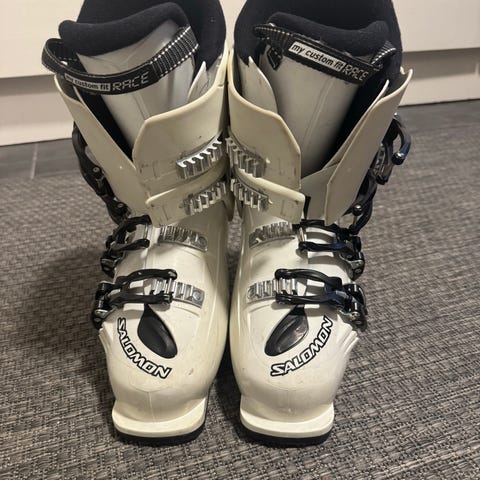 Salomon laskettelumonot kokoa 24, vastaa n. kokoa 38. Käytönjälkiä näkyy jonkin verran, mutta ehjät ovat.