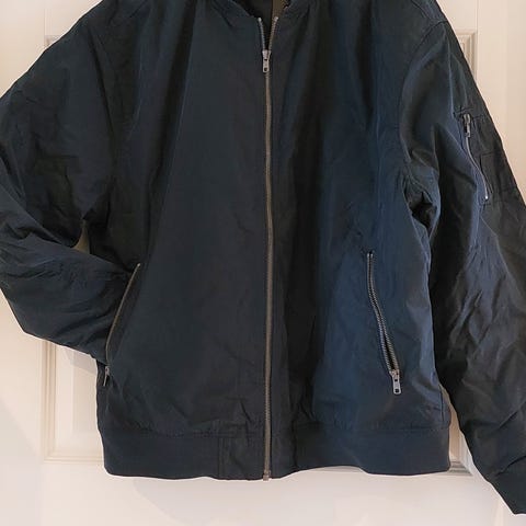Käyttämätön sininen miesten takki. Kevyesti topattu.