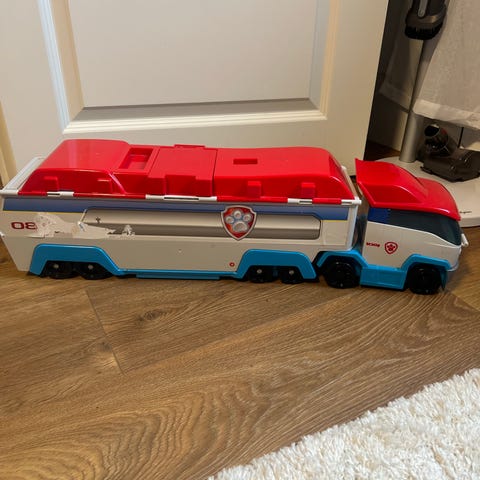 Ryhmä Hau Rekku ja roska-autonsa. Täysin ehjät ja puhtaat. Roska-autossa etuvalot ja peruutus & käynnistysäänet. Auton korkeus 11 cm, pituus 20 cm.